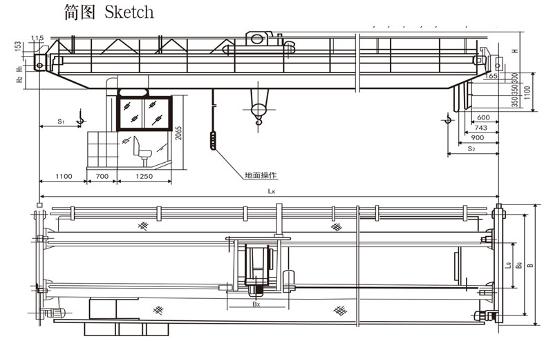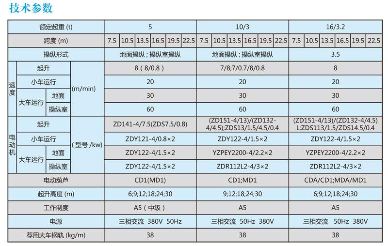 LH型電動葫蘆橋式起重機。具有外形尺寸緊湊、建筑凈空高度低、自重輕、輪壓小等優點。適用于機械加工車間、冶金、倉庫、料場、電站等,它也可以替代普通雙梁橋式起重機。起重量為1-50T,跨度為7.5-35.5米,工作級別為A3--A5,工作環境溫度為-25℃--40℃。